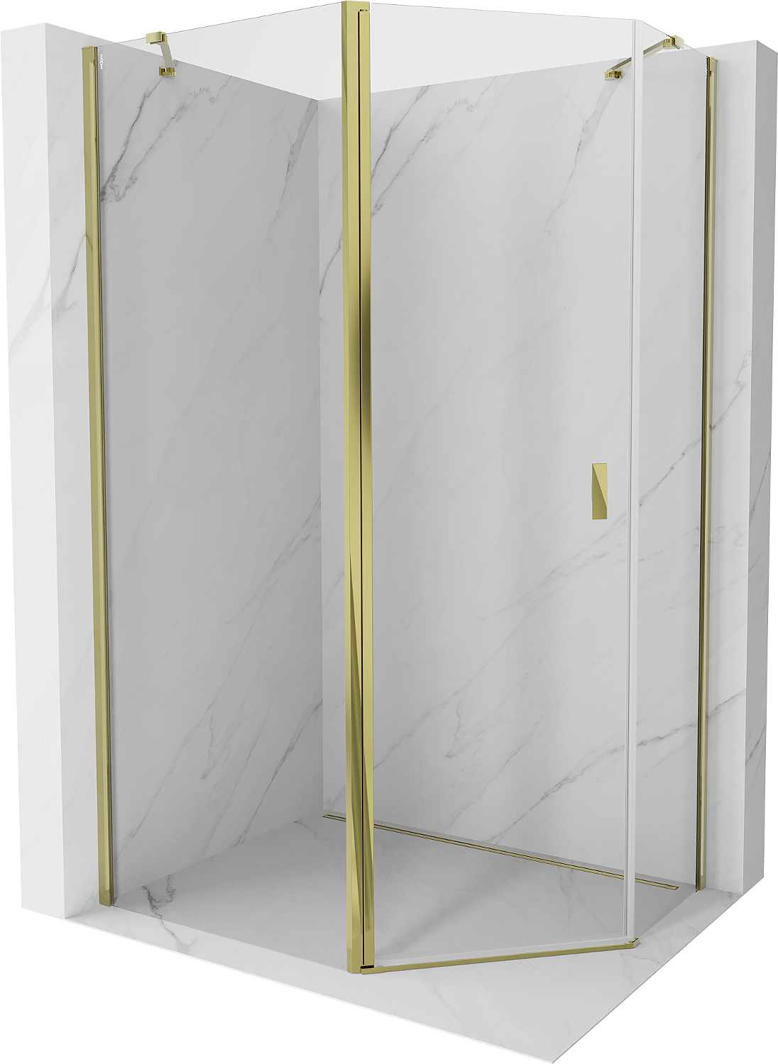 Mexen Mist asymetrická pětiúhelníková sprchová kabina s otočnými dveřmi 100 x 90 cm, transparentní, zlatá