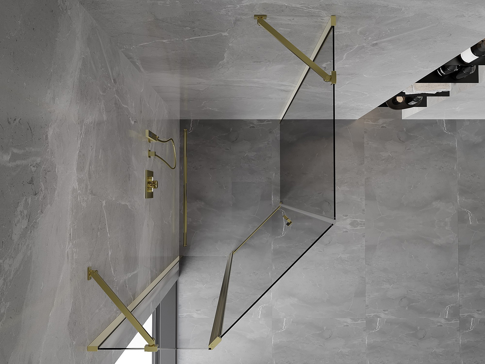 Mexen Mist asymetrická pětiúhelníková sprchová kabina s výklopnými dveřmi 80 x 100 cm, průhledná, zlatá