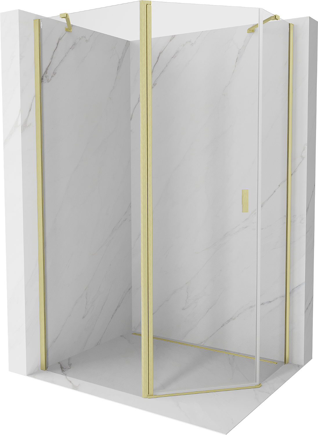 Mexen Mist pětiúhelníkový asymetrický sprchový kout na pantech 100 x 80 cm, průhledný, zlatý kartáčovaný - 8A8-100-080-55-00