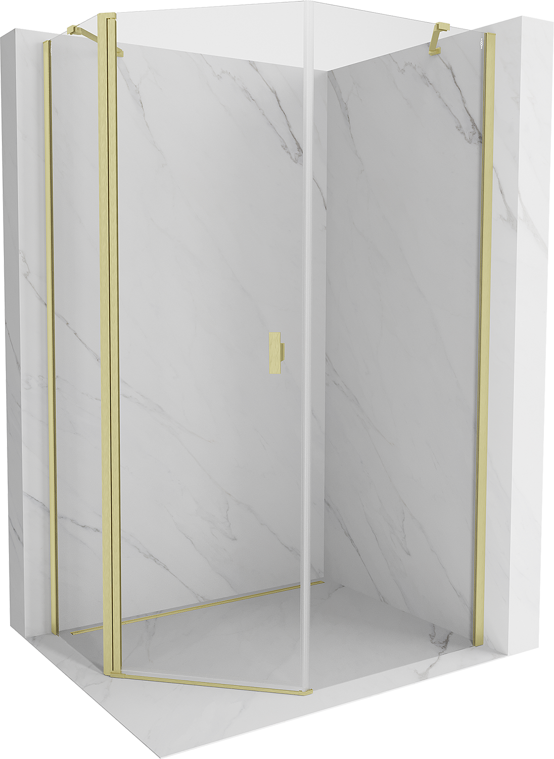 Mexen Mist asymetrická pětiúhelníková sprchová kabina 80 x 90 cm, transparentní, zlatá kartáčovaná
