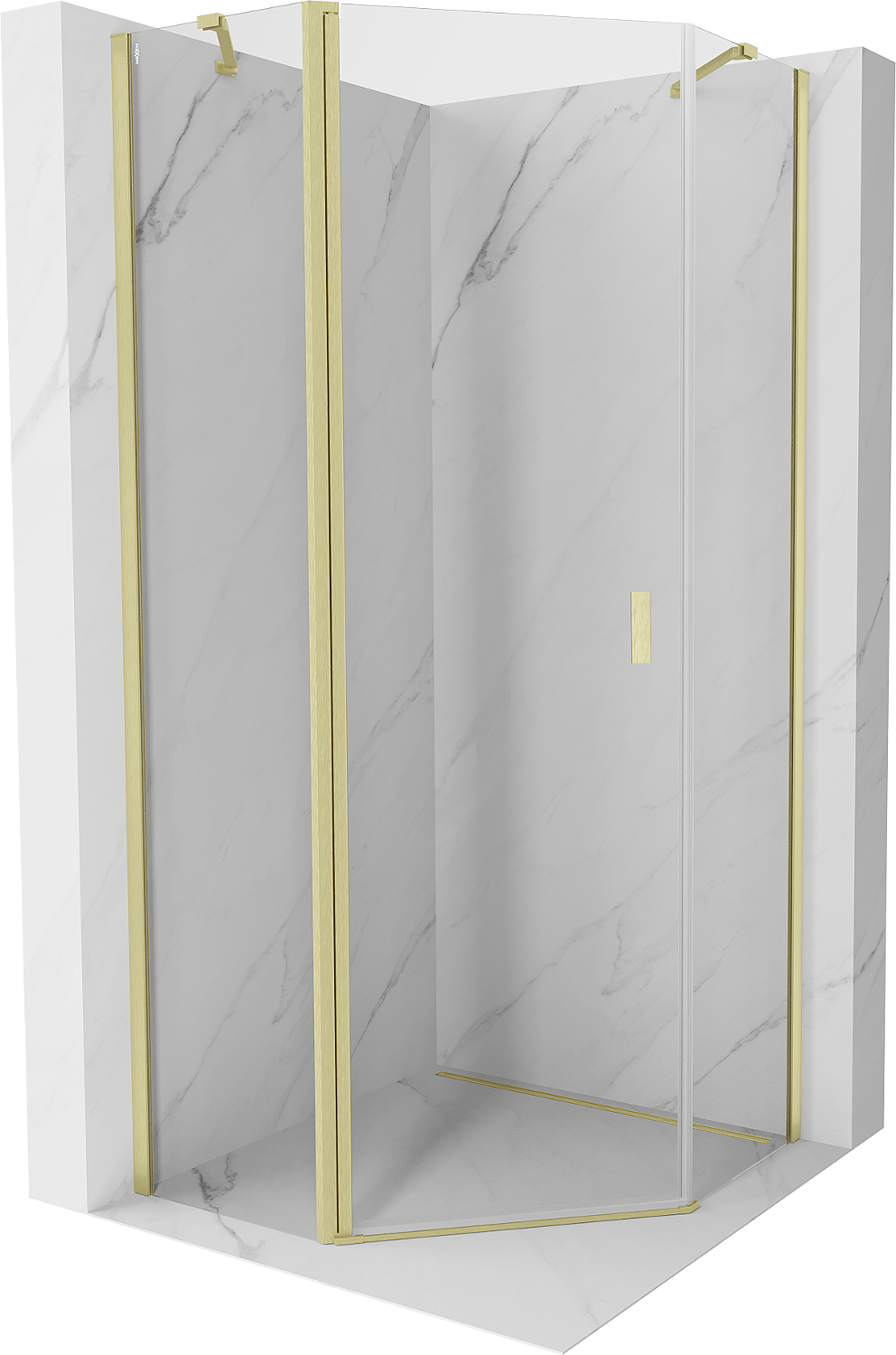 Mexen Mist pětiúhelníková sprchová kabina s výklopnými dveřmi 90 x 90 cm, transparentní, zlatá kartáčovaná - 8A8-090-090-55-00
