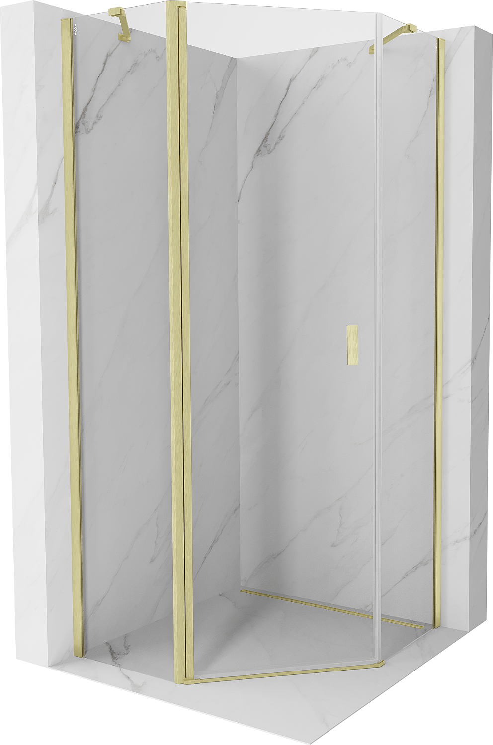 Mexen Mist pětiúhelníkový sprchový kout s otočnými dveřmi 90 x 90 cm, transparentní, zlatý kartáčovaný