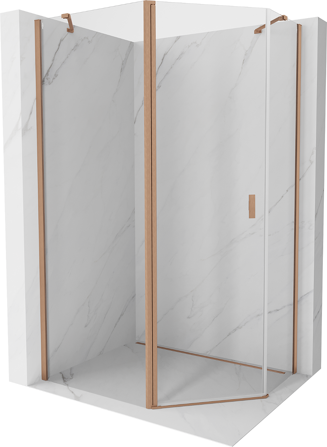 Mexen Mist sprchový kout pětiúhelníkový asymetrický otevíratelný 100 x 80 cm, transparentní, kartáčovaná měď