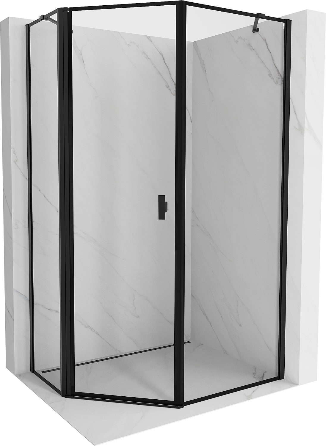 Mexen Mist pětiúhelníkový asymetrický sprchový kout s levými otočnými dveřmi 90 x 100 cm, černý rámeček, černý