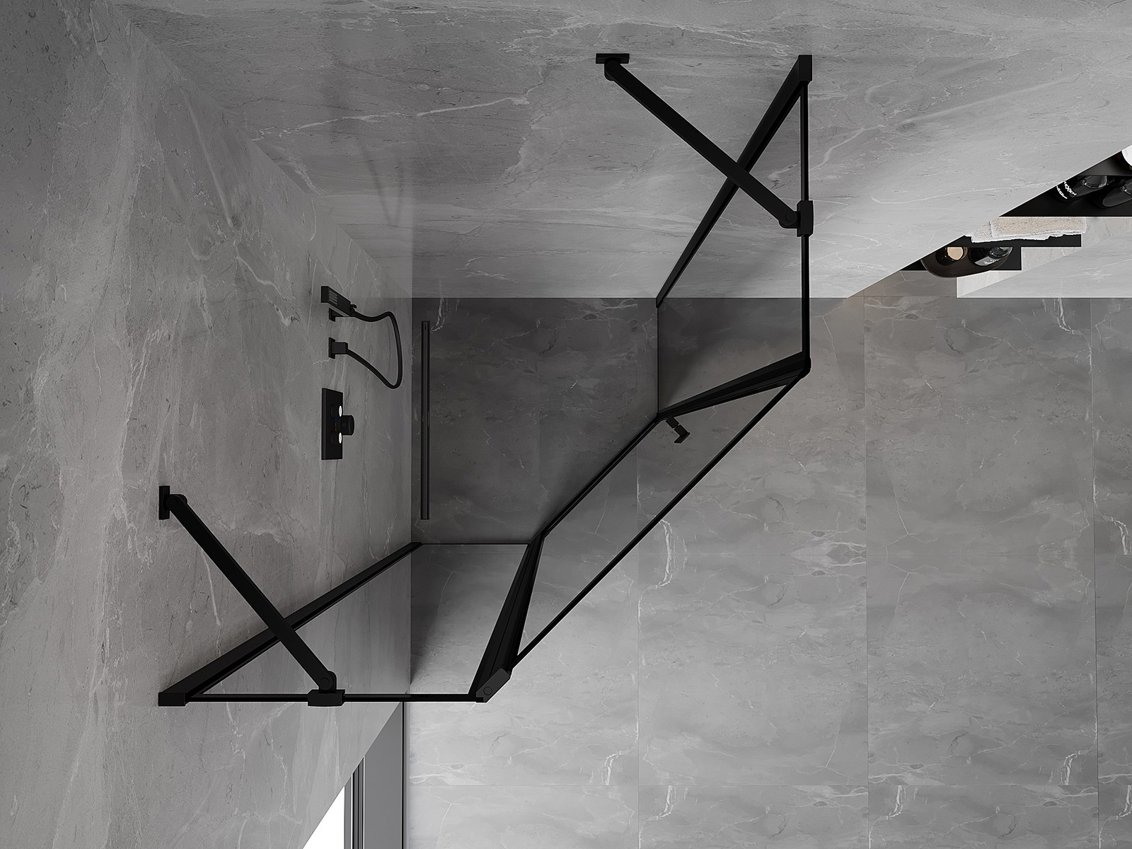 Mexen Mist pětiúhelníkový sprchový kout s výklopnými dveřmi, levý, 100 x 100 cm, černý rám, černý - 8A8-100-100-70-70-L