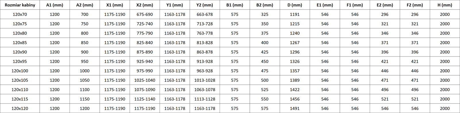 Rozměr: 120x85 cm (levé dveře 120 cm, pravé dveře 85 cm)