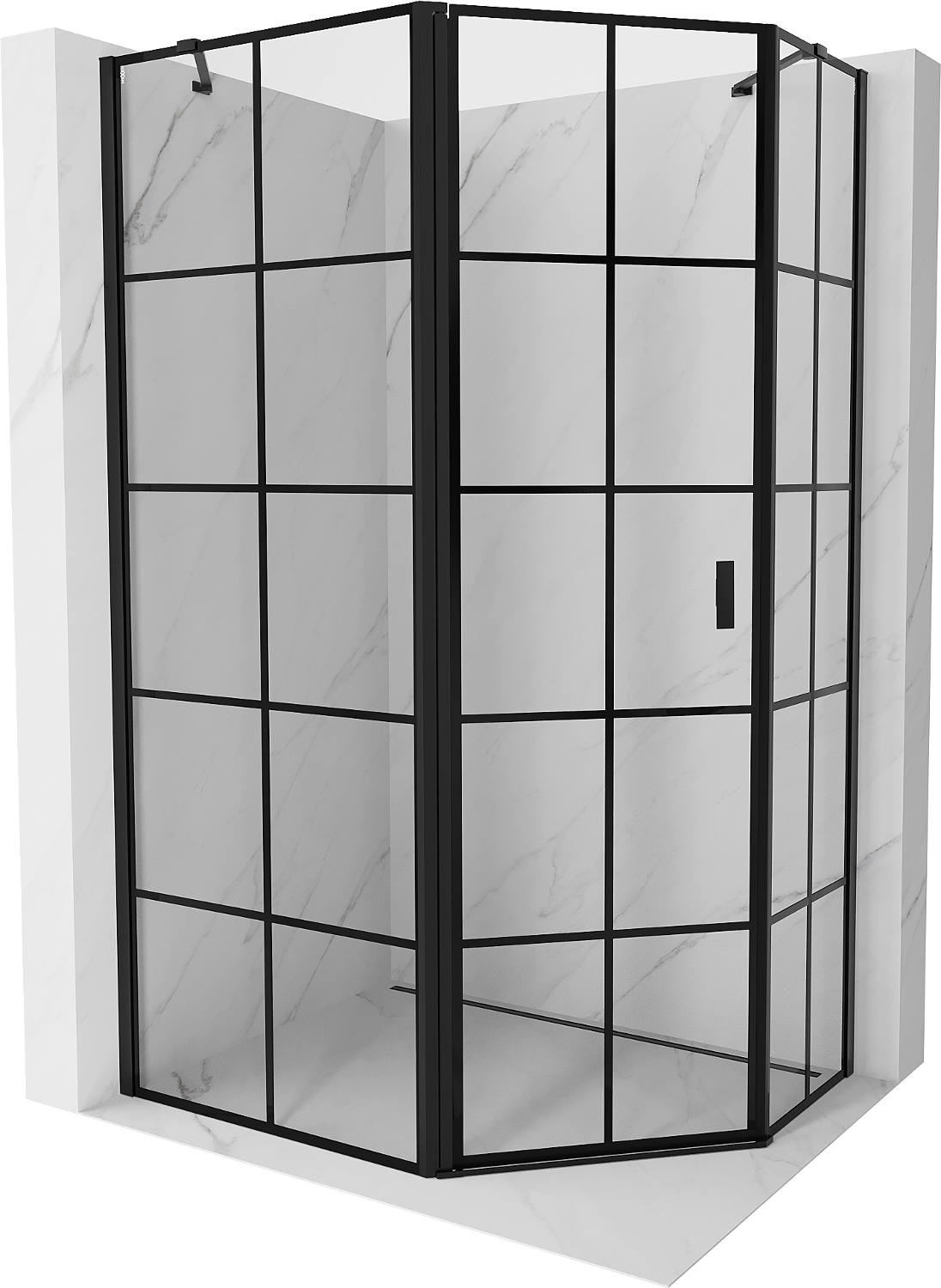 Mexen Mist asymetrická sprchová kabina pětiúhelníková levá 90 x 80 cm, černá mřížka, černá - 8A8-090-080-70-77-L