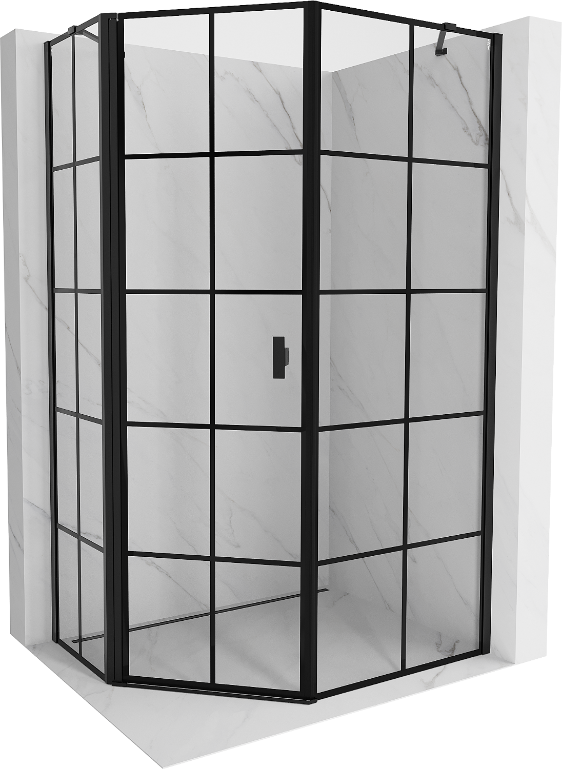 Mexen Mist sprchový kout pětiúhelníkový asymetrický otočný levý 90 x 100 cm, černá mřížka, černý