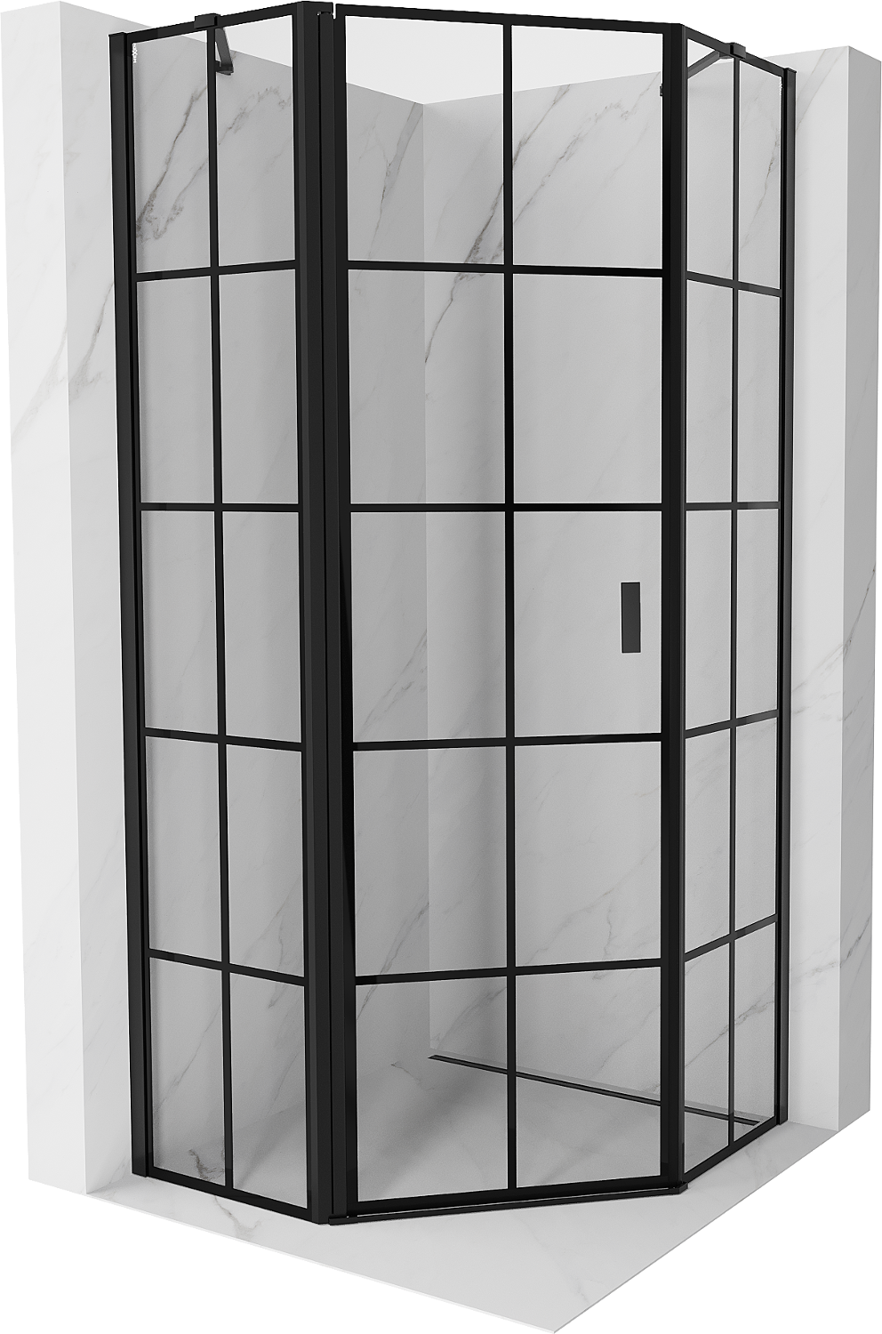 Mexen Mist sprchový kout pětiúhelníkový otočný levý 100 x 100 cm, černá mřížka, černá - 8A8-100-100-70-77-L