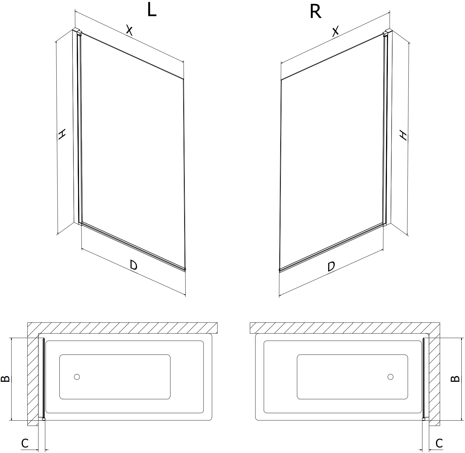 Paravan vyrobený ze dvou křídel s možností složení. Takové řešení umožňuje ušetřit více místa v koupelně a umožňuje volné využití zbývajícího prostoru, když nepoužíváme koupací zónu.