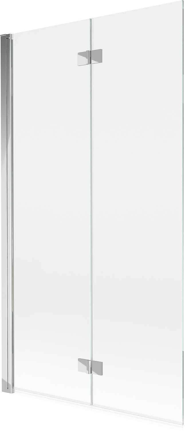 Paravan vyrobený ze dvou křídel s možností složení. Takové řešení umožňuje ušetřit více místa v koupelně a umožňuje volné využití zbývajícího prostoru, když nepoužíváme koupací zónu.