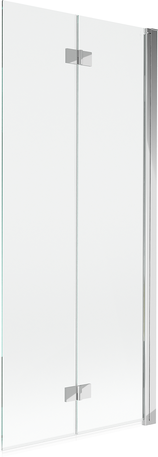 Paravan vyrobený ze dvou křídel s možností složení. Takové řešení umožňuje ušetřit více místa v koupelně a umožňuje volné využití zbývajícího prostoru, když nepoužíváme koupací zónu.