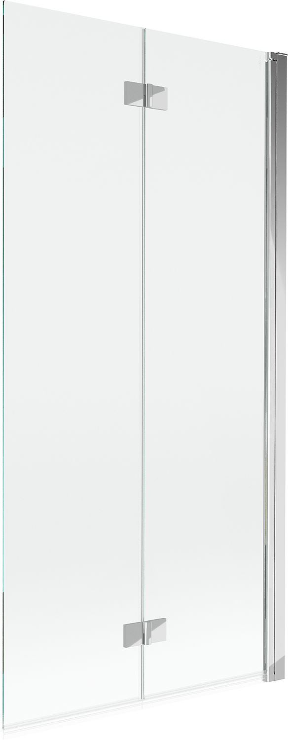 Paravan vyrobený ze dvou křídel s možností složení. Takové řešení umožňuje ušetřit více místa v koupelně a umožňuje volné využití zbývajícího prostoru, když nepoužíváme koupací zónu.