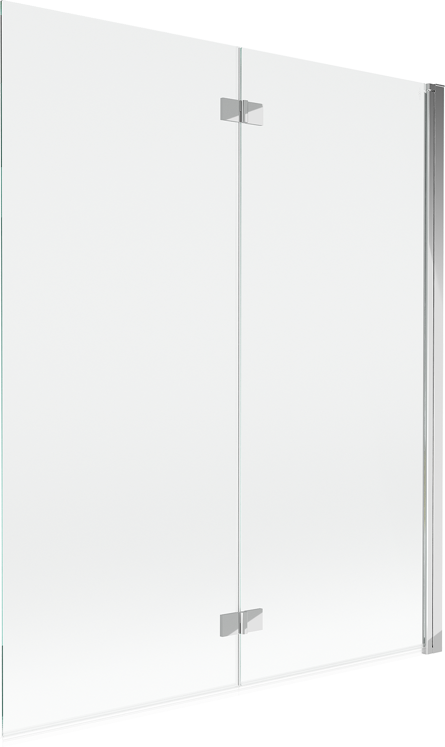 Paravan vyrobený ze dvou křídel s možností složení. Takové řešení umožňuje ušetřit více místa v koupelně a umožňuje volné využití zbývajícího prostoru, když nepoužíváme koupací zónu.