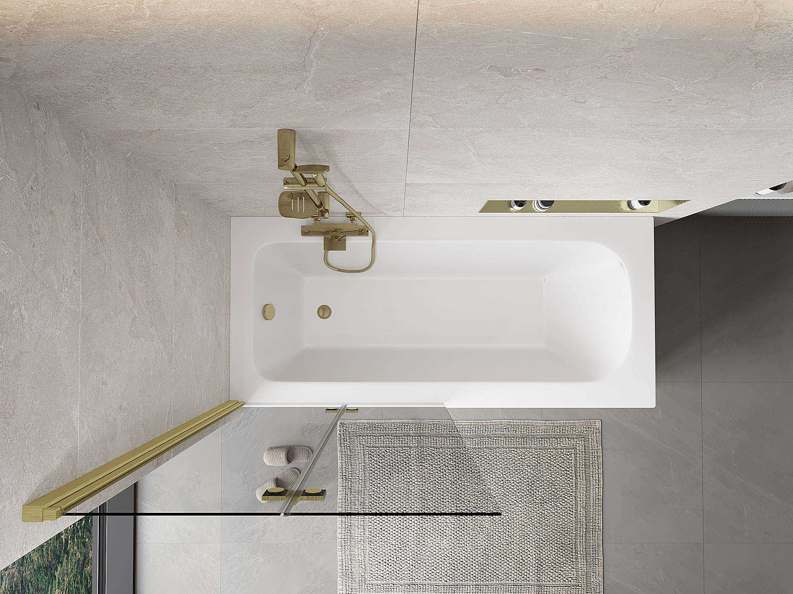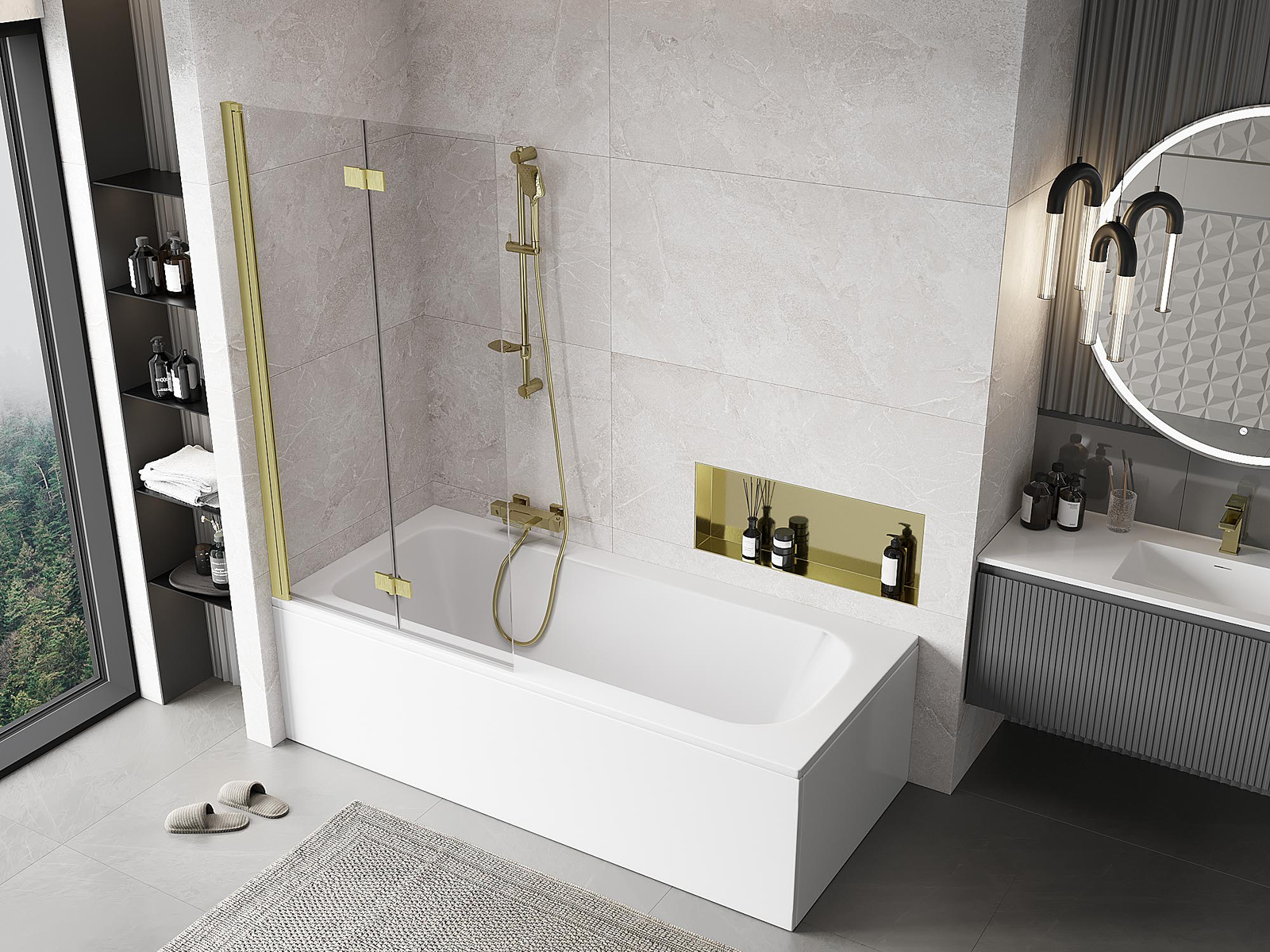 Paravan vyrobený ze dvou křídel s možností složení. Takové řešení umožňuje ušetřit více místa v koupelně a umožňuje volné využití zbývajícího prostoru, když nepoužíváme koupací zónu.