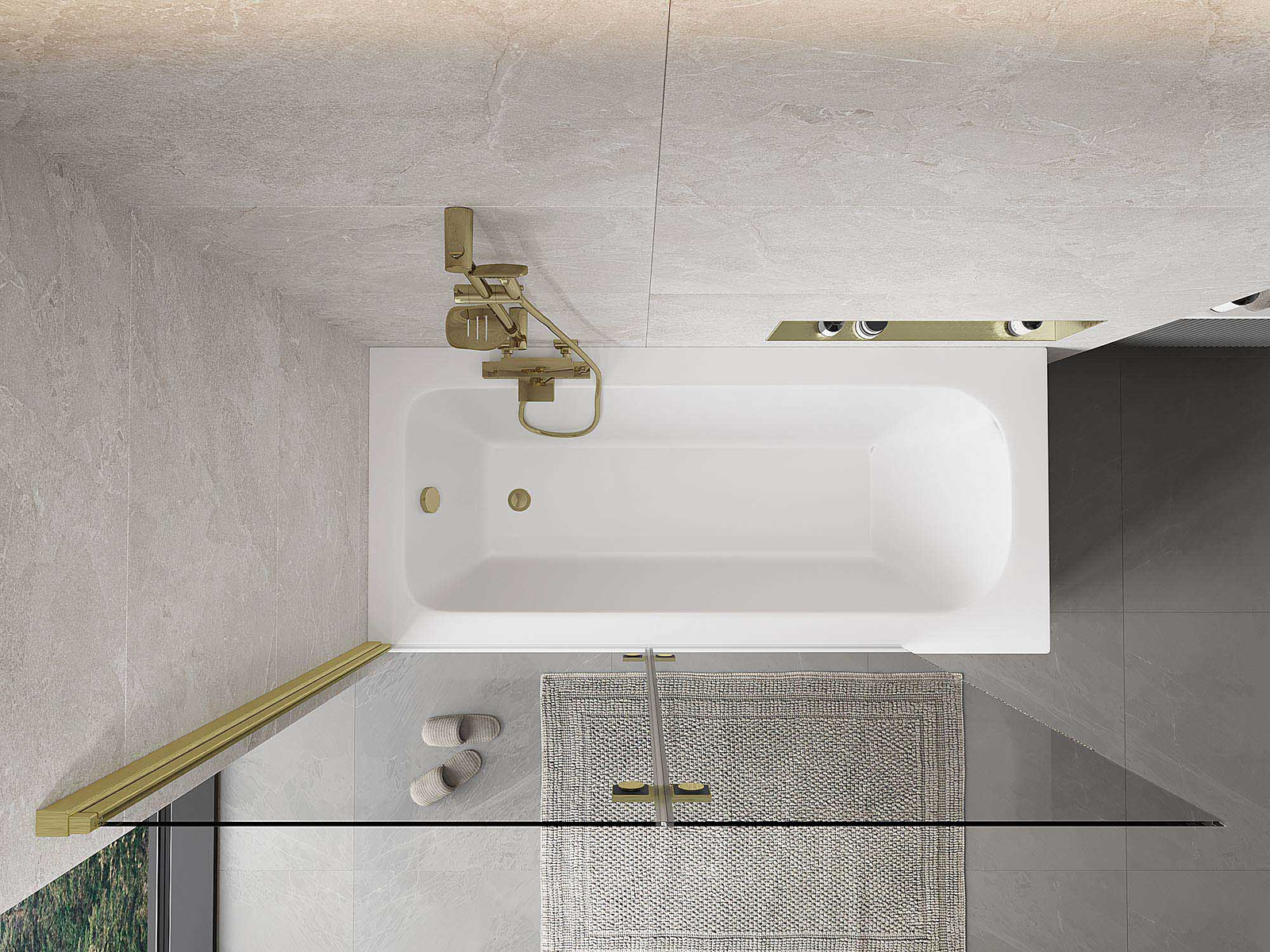Mosazné závěsy zarovnané s plochou skla