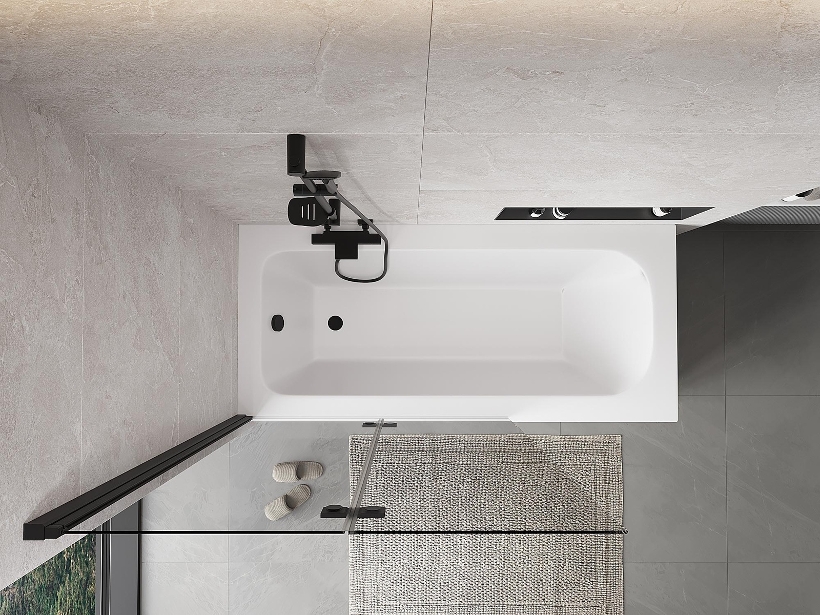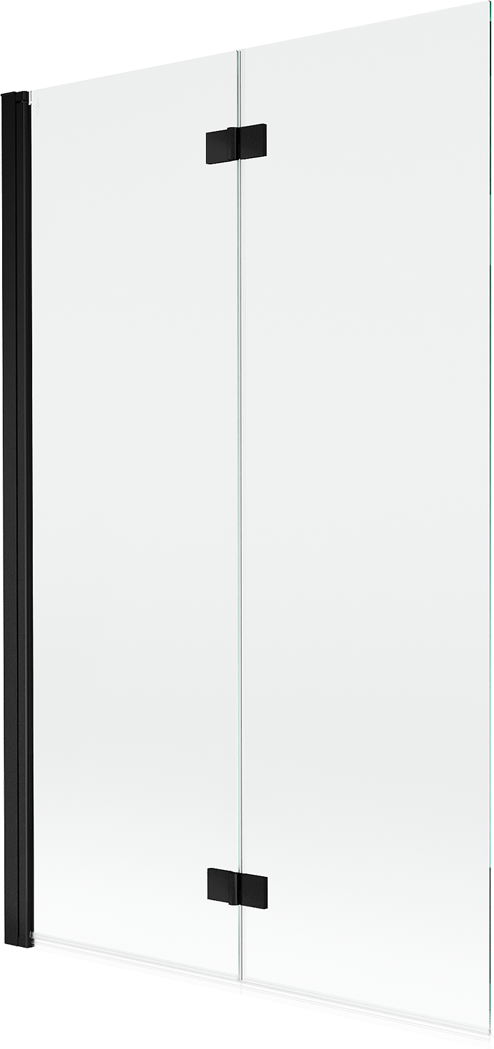Paravan vyrobený ze dvou křídel s možností složení. Takové řešení umožňuje ušetřit více místa v koupelně a umožňuje volné využití zbývajícího prostoru, když nepoužíváme koupací zónu.