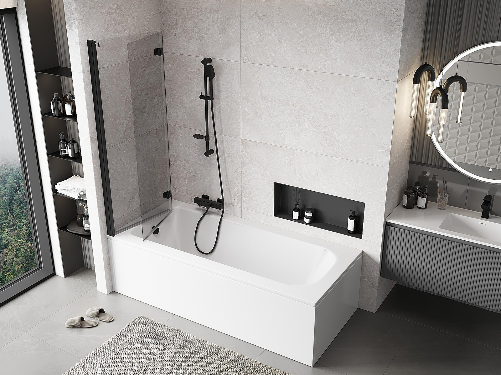 Účinná ochrana před rozléváním vody během koupání. Paraván má těsnění, která se ideálně přizpůsobují skleněné desce a okraji vany. Funkční řešení zajišťující bezpečnost a snadnou údržbu čistoty.