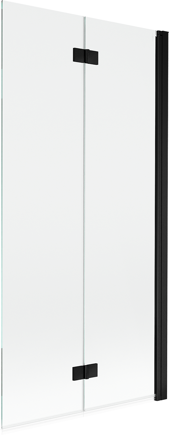 Paravan vyrobený ze dvou křídel s možností složení. Takové řešení umožňuje ušetřit více místa v koupelně a umožňuje volné využití zbývajícího prostoru, když nepoužíváme koupací zónu.