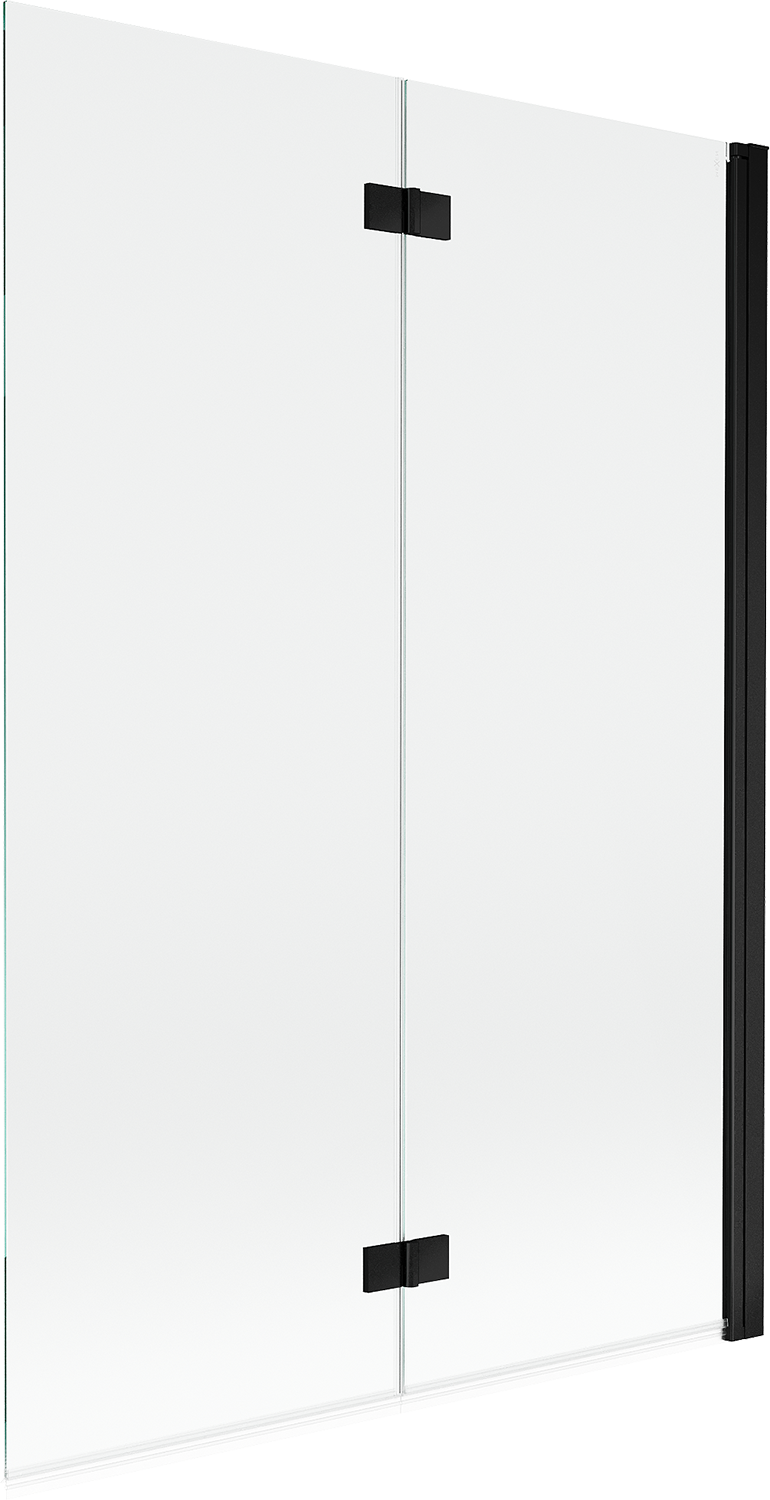 Paravan vyrobený ze dvou křídel s možností složení. Takové řešení umožňuje ušetřit více místa v koupelně a umožňuje volné využití zbývajícího prostoru, když nepoužíváme koupací zónu.