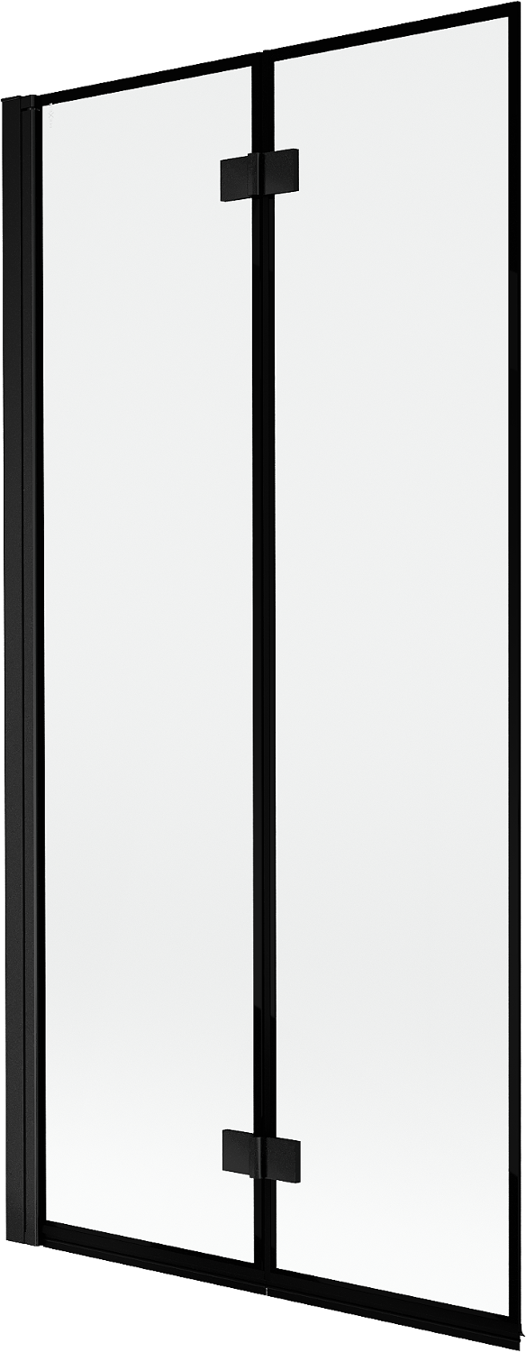 Paravan vyrobený ze dvou křídel s možností složení. Takové řešení umožňuje ušetřit více místa v koupelně a umožňuje volné využití zbývajícího prostoru, když nepoužíváme koupací zónu.
