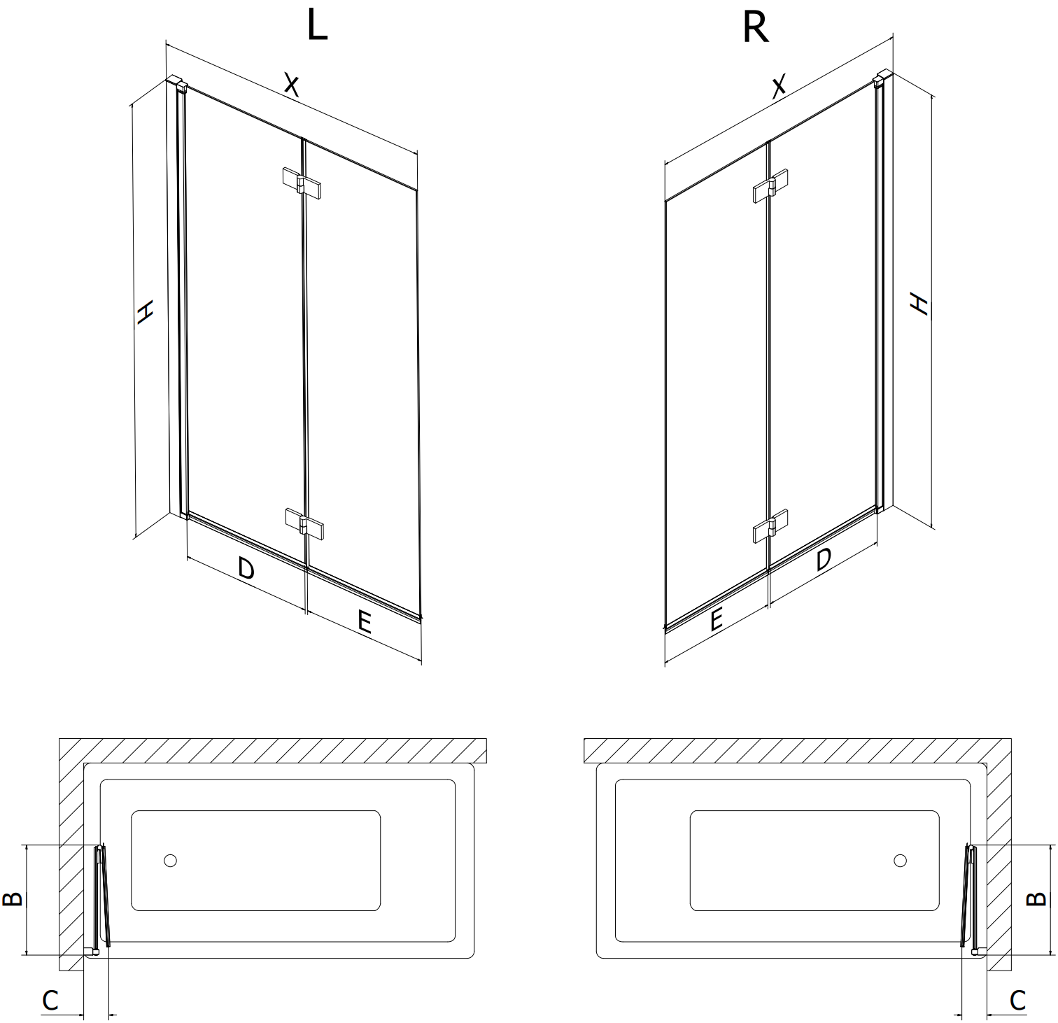 Paravan vyrobený ze dvou křídel s možností složení. Takové řešení umožňuje ušetřit více místa v koupelně a umožňuje volné využití zbývajícího prostoru, když nepoužíváme koupací zónu.
