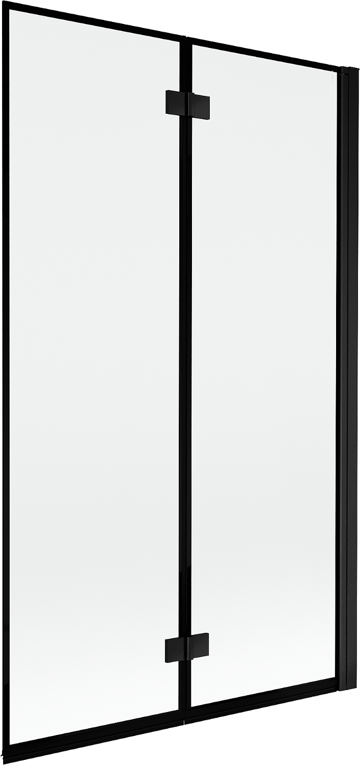 Paravan vyrobený ze dvou křídel s možností složení. Takové řešení umožňuje ušetřit více místa v koupelně a umožňuje volné využití zbývajícího prostoru, když nepoužíváme koupací zónu.