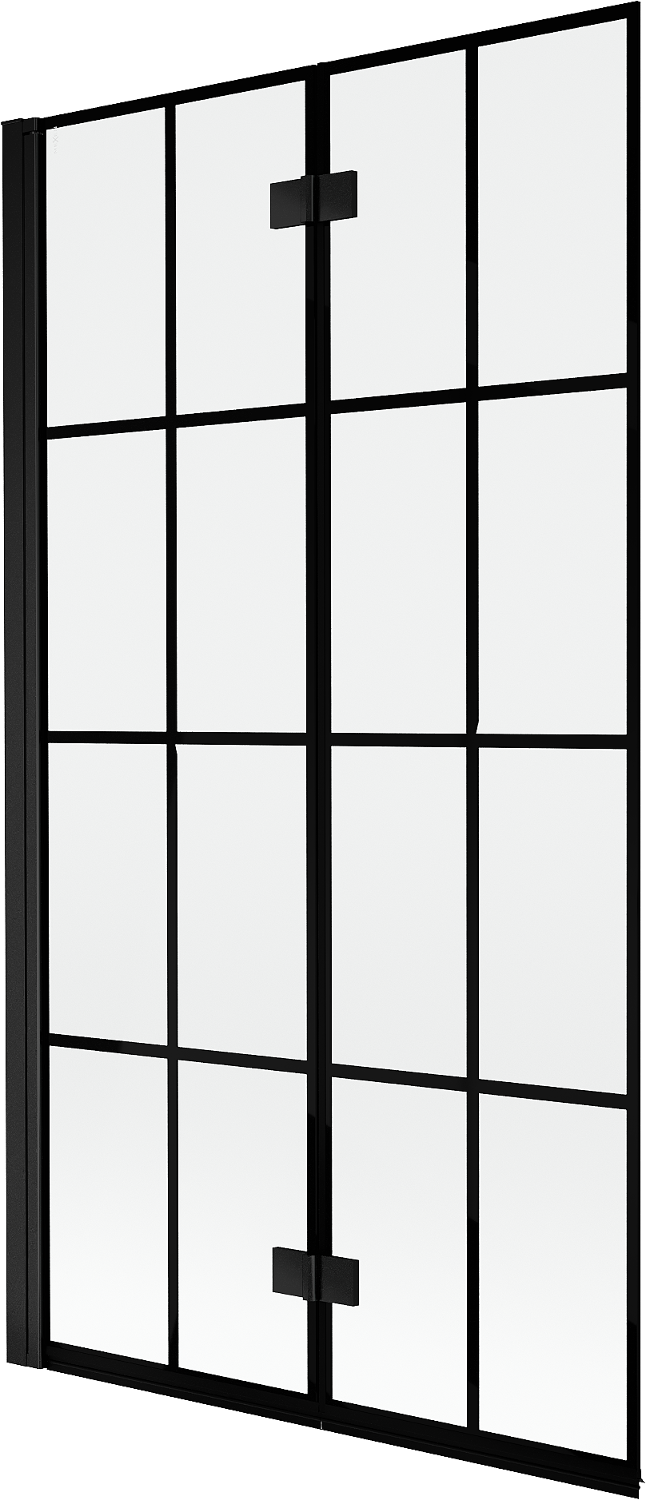Paravan vyrobený ze dvou křídel s možností složení. Takové řešení umožňuje ušetřit více místa v koupelně a umožňuje volné využití zbývajícího prostoru, když nepoužíváme koupací zónu.