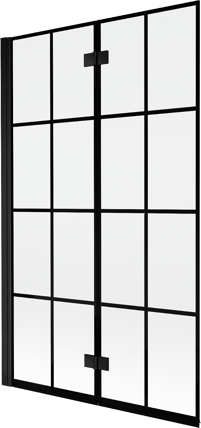Paravan vyrobený ze dvou křídel s možností složení. Takové řešení umožňuje ušetřit více místa v koupelně a umožňuje volné využití zbývajícího prostoru, když nepoužíváme koupací zónu.