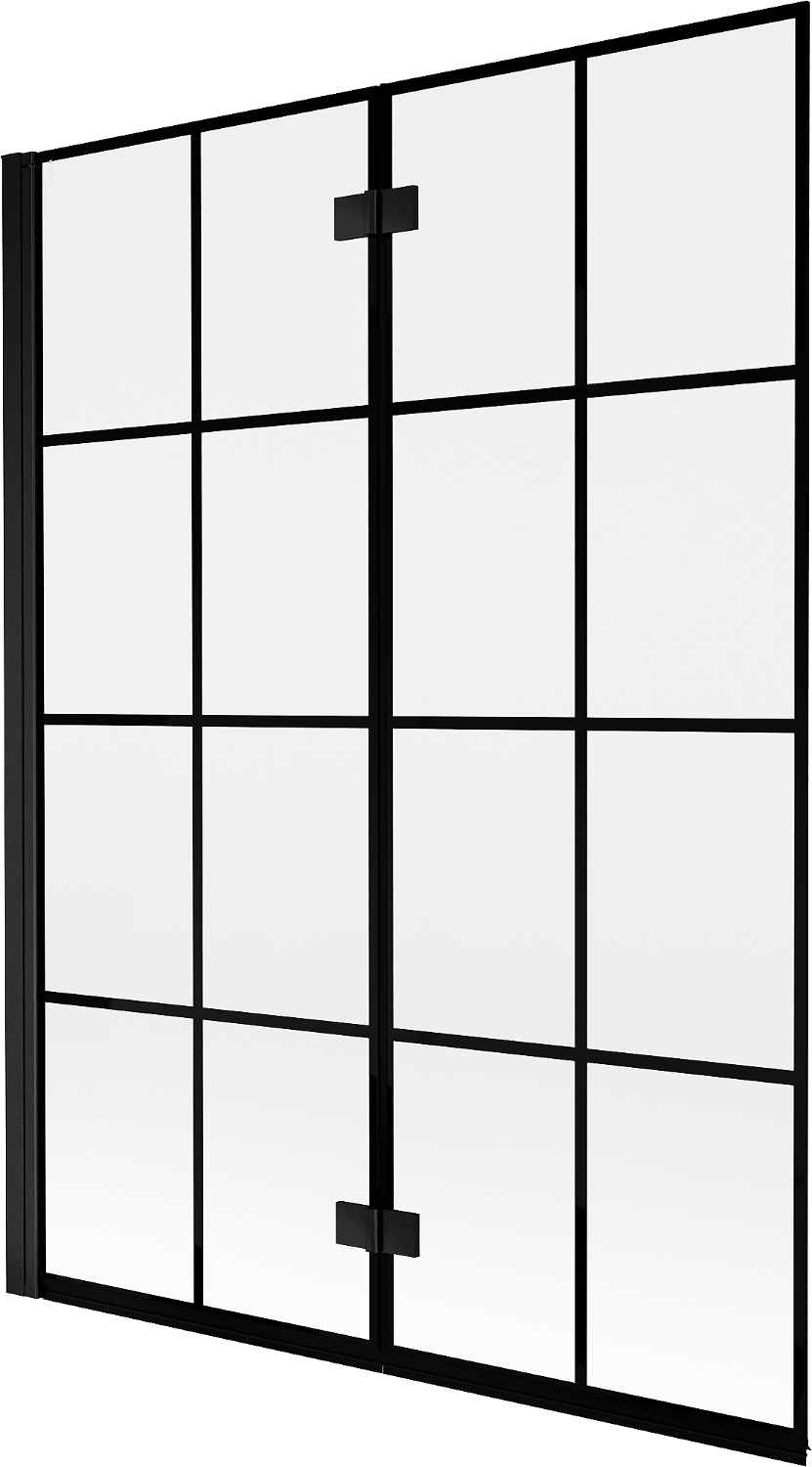 Paravan vyrobený ze dvou křídel s možností složení. Takové řešení umožňuje ušetřit více místa v koupelně a umožňuje volné využití zbývajícího prostoru, když nepoužíváme koupací zónu.