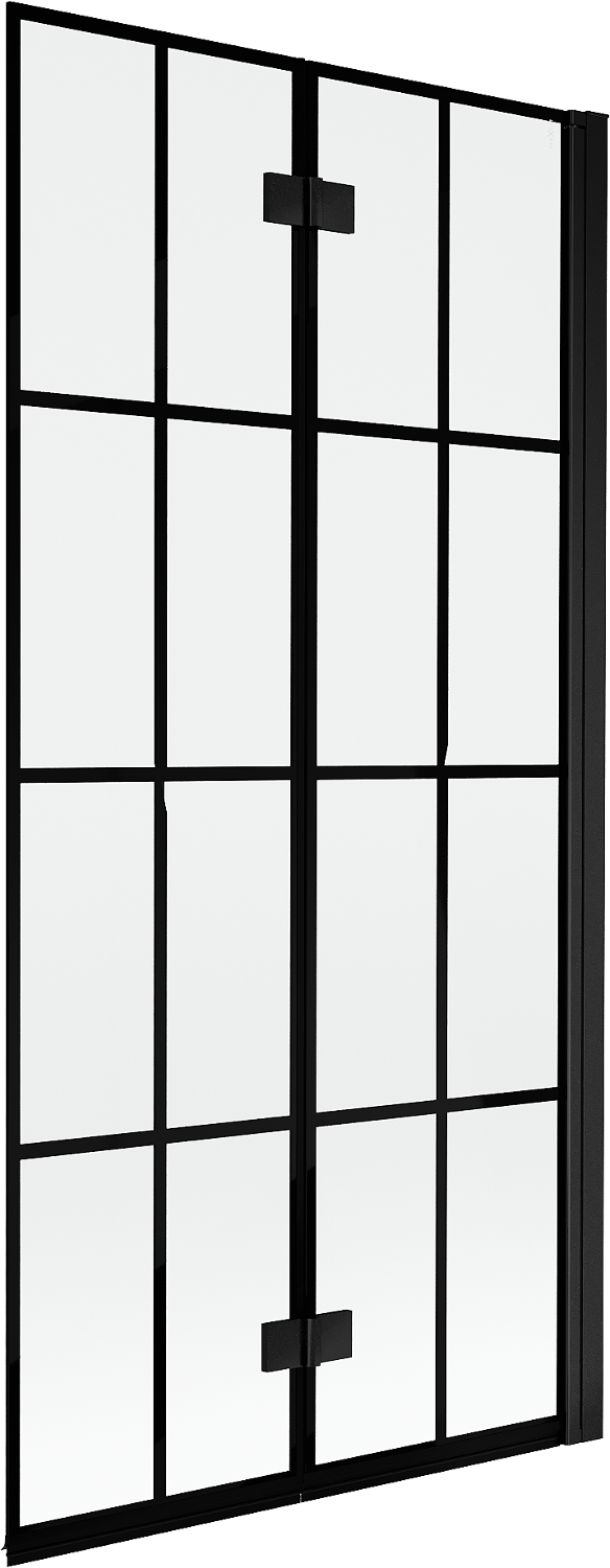 Paravan vyrobený ze dvou křídel s možností složení. Takové řešení umožňuje ušetřit více místa v koupelně a umožňuje volné využití zbývajícího prostoru, když nepoužíváme koupací zónu.
