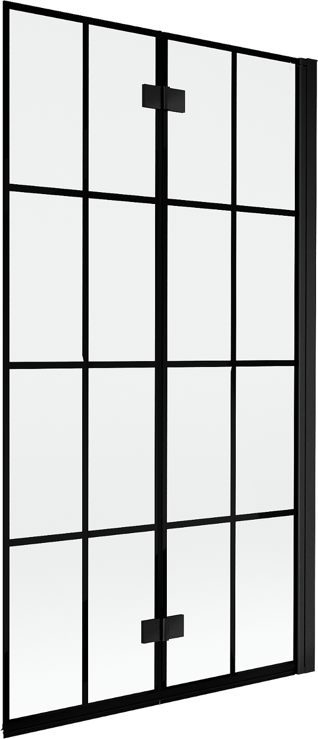 Paravan vyrobený ze dvou křídel s možností složení. Takové řešení umožňuje ušetřit více místa v koupelně a umožňuje volné využití zbývajícího prostoru, když nepoužíváme koupací zónu.