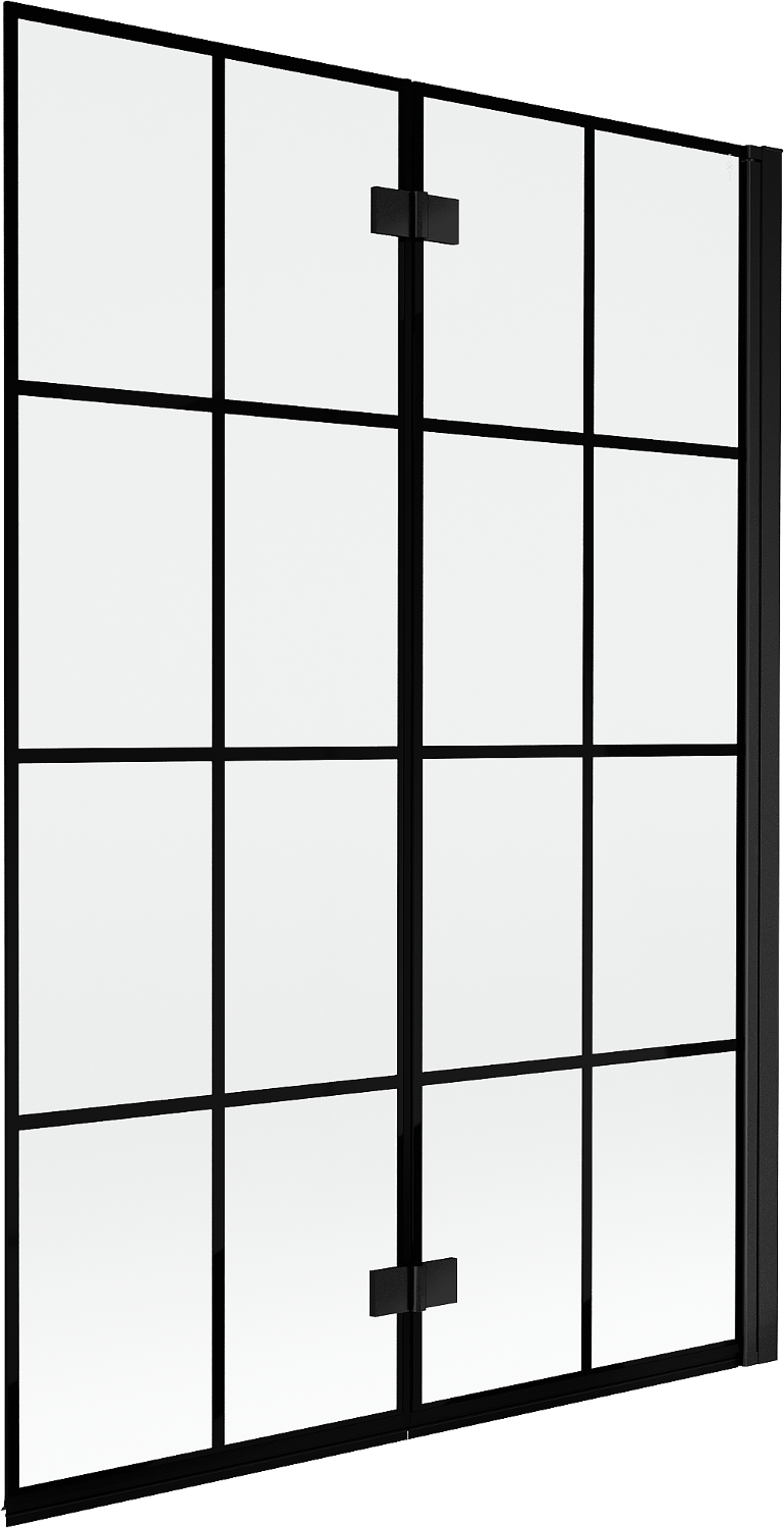 Paravan vyrobený ze dvou křídel s možností složení. Takové řešení umožňuje ušetřit více místa v koupelně a umožňuje volné využití zbývajícího prostoru, když nepoužíváme koupací zónu.