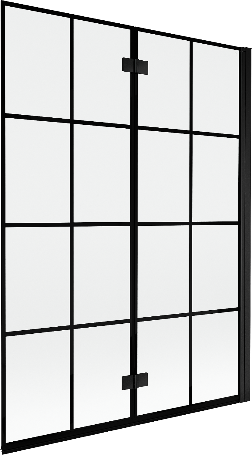 Paravan vyrobený ze dvou křídel s možností složení. Takové řešení umožňuje ušetřit více místa v koupelně a umožňuje volné využití zbývajícího prostoru, když nepoužíváme koupací zónu.
