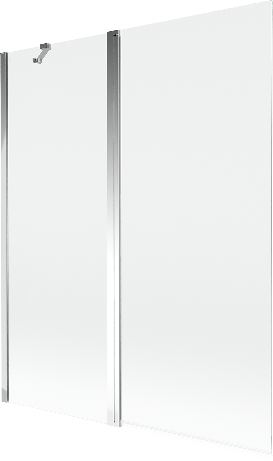 Paravan vyrobený ze dvou křídel s možností složení. Takové řešení umožňuje ušetřit více místa v koupelně a umožňuje volné využití zbývajícího prostoru, když nepoužíváme koupací zónu.