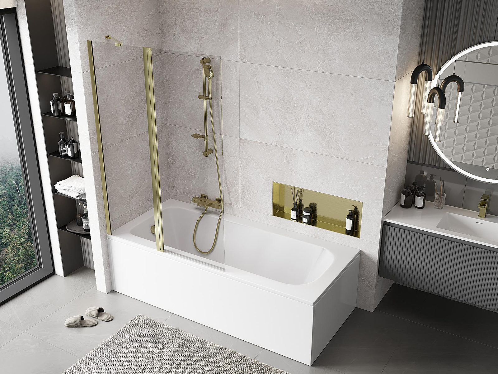 Mexen Mist paravan na vanu 2-křídlý 110 x 150 cm, transparentní, zlatý - 8A9-110-011-50-00