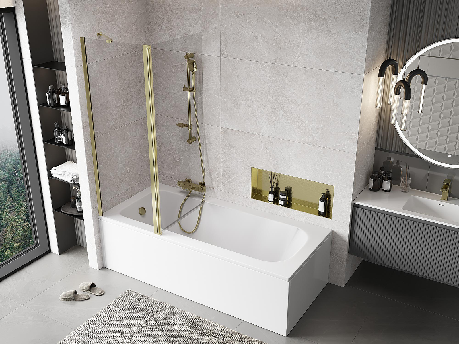 Mexen Mist vanová zástěna 2-dílná 130 x 150 cm, transparentní, zlatá - 8A9-130-011-50-00