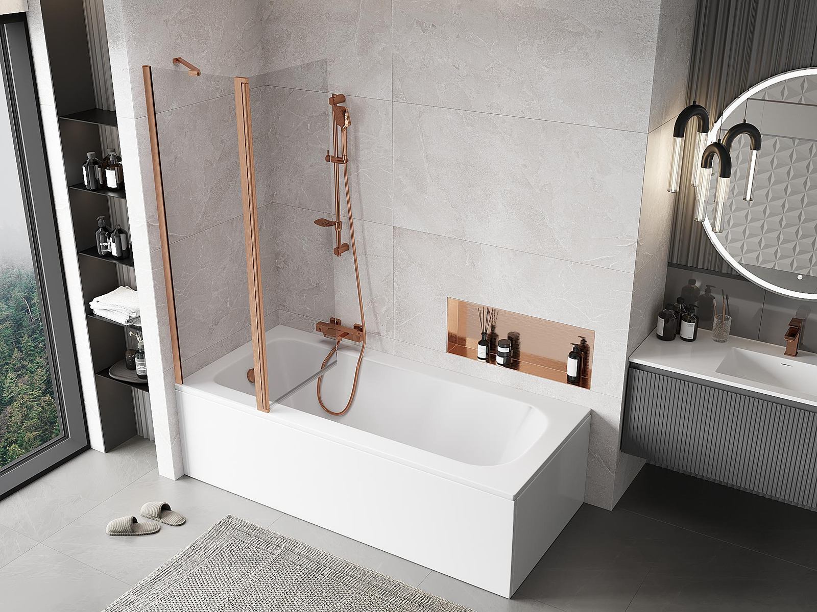 Mexen Mist vanová zástěna 2-křídlová 110 x 150 cm, transparentní, kartáčovaná měď - 8A9-110-011-65-00