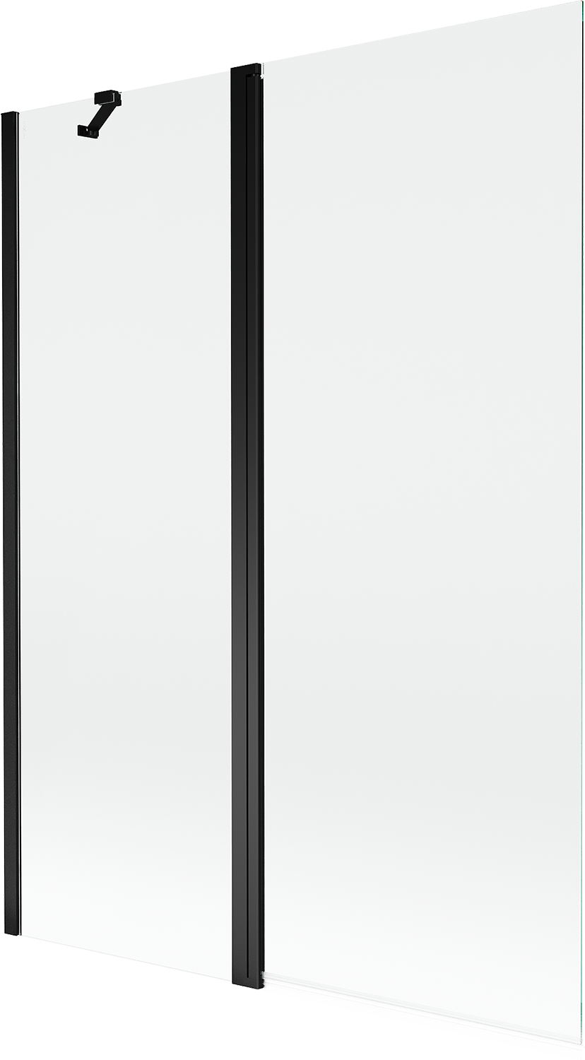 Paravan vyrobený ze dvou křídel s možností složení. Takové řešení umožňuje ušetřit více místa v koupelně a umožňuje volné využití zbývajícího prostoru, když nepoužíváme koupací zónu.