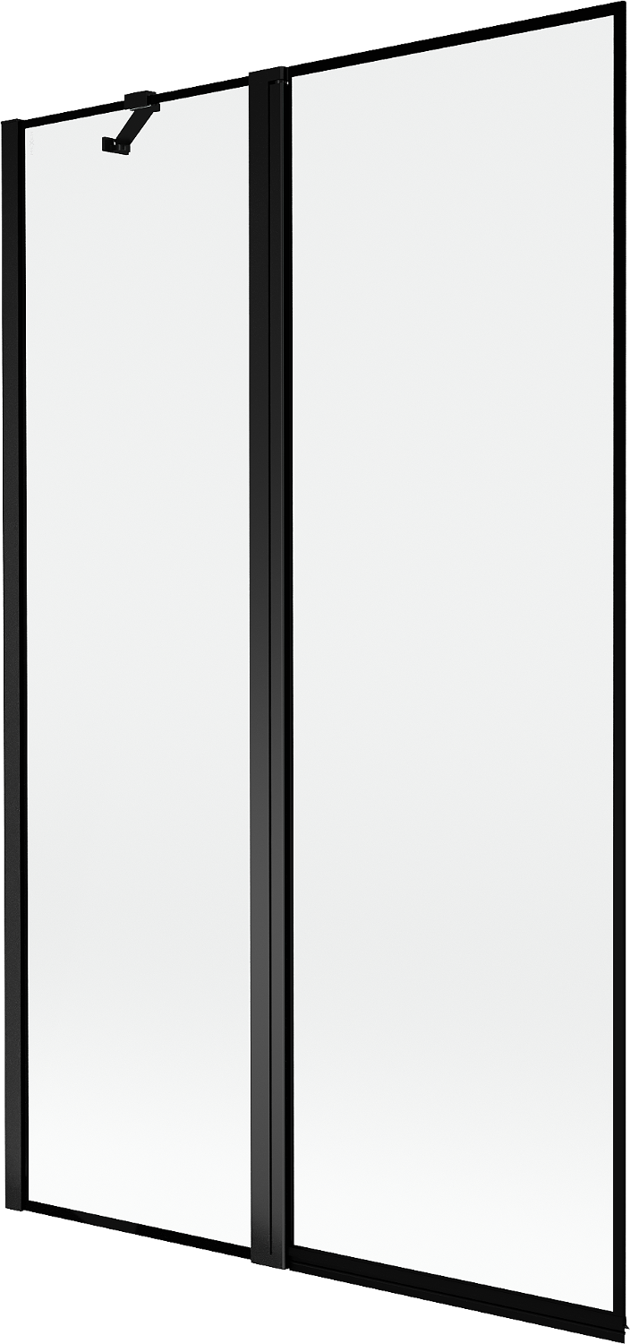 Paravan vyrobený ze dvou křídel s možností složení. Takové řešení umožňuje ušetřit více místa v koupelně a umožňuje volné využití zbývajícího prostoru, když nepoužíváme koupací zónu.