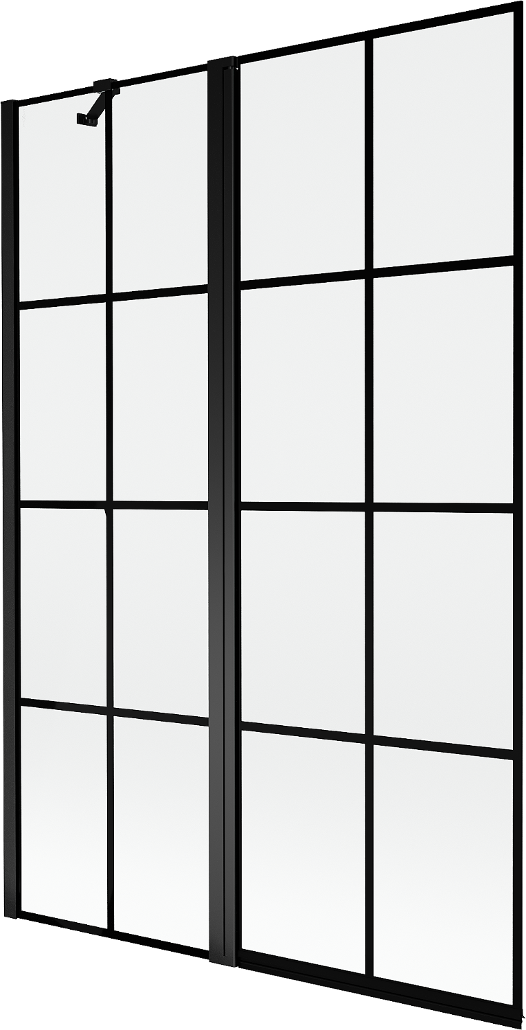 Paravan vyrobený ze dvou křídel s možností složení. Takové řešení umožňuje ušetřit více místa v koupelně a umožňuje volné využití zbývajícího prostoru, když nepoužíváme koupací zónu.