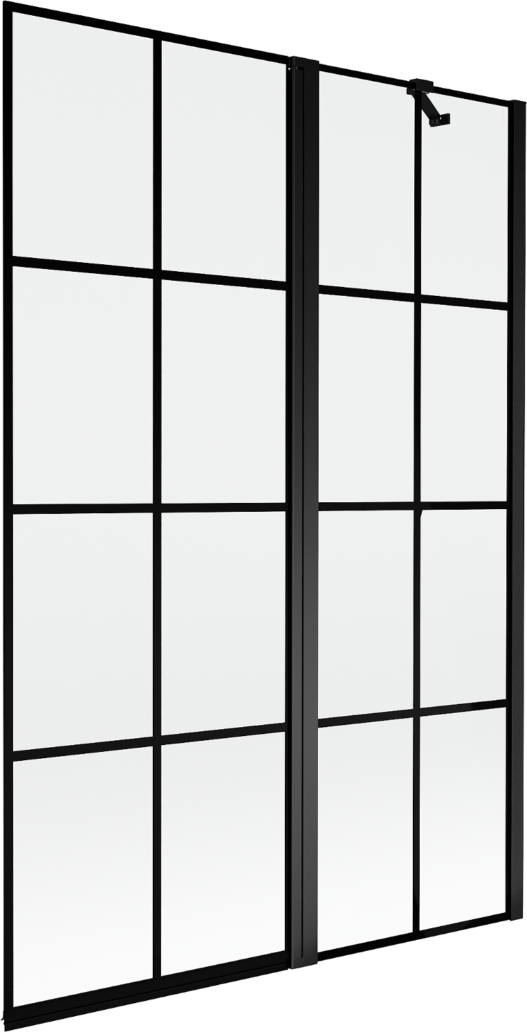 Paravan vyrobený ze dvou křídel s možností složení. Takové řešení umožňuje ušetřit více místa v koupelně a umožňuje volné využití zbývajícího prostoru, když nepoužíváme koupací zónu.