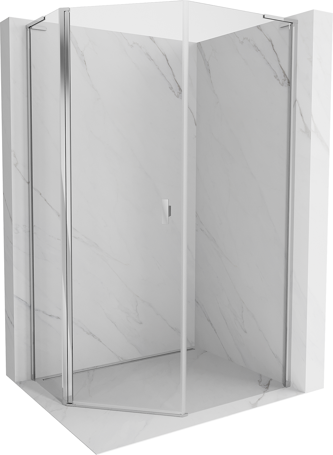 Mexen Mist L asymetrická pětihranná sprchová kabina s křídlovými dveřmi 80 x 90 cm, transparentní, chrom