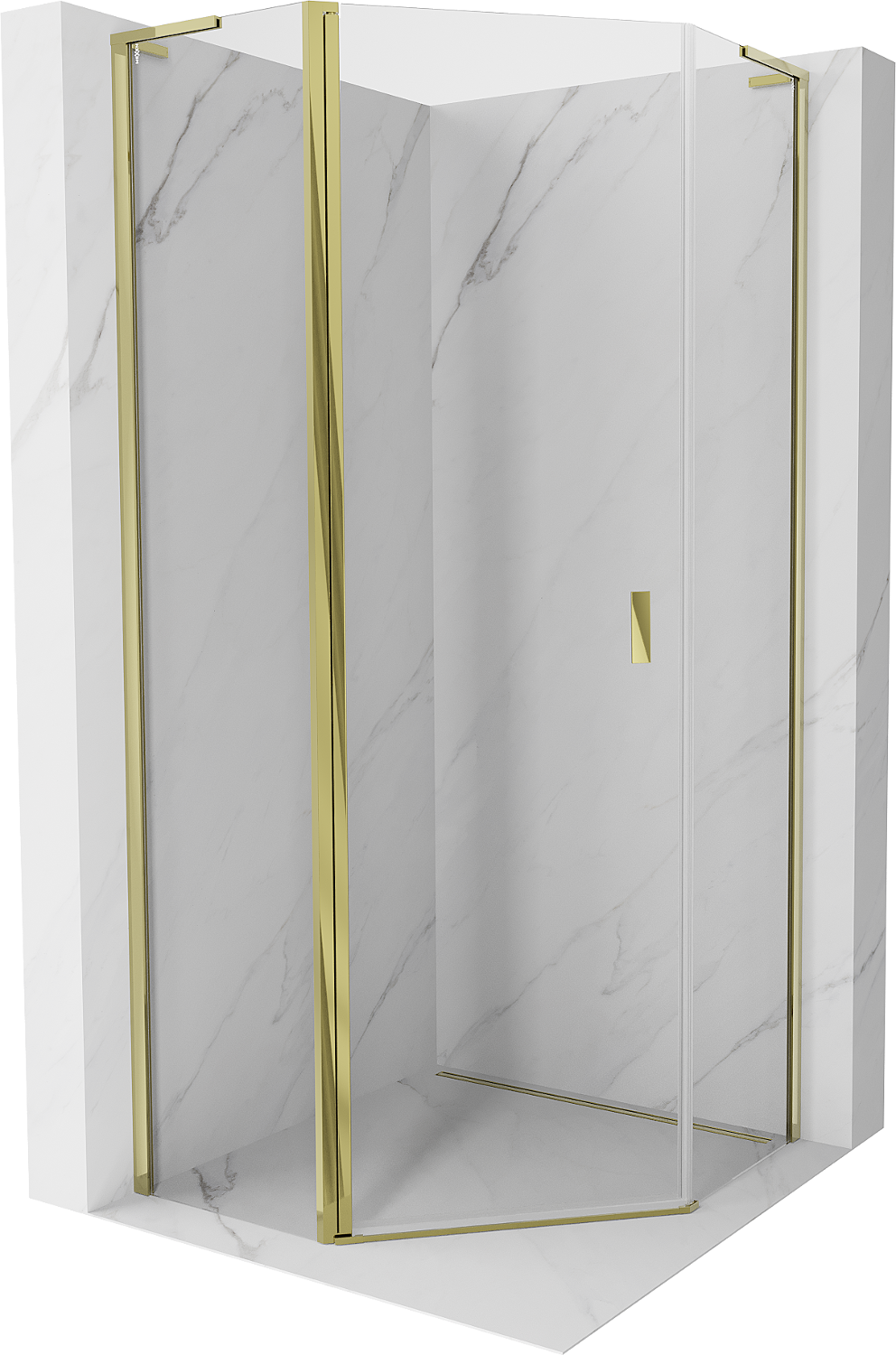 Mexen Mist L pětiúhelníkový sprchový kout s otočnými dveřmi 80 x 80 cm, transparentní, zlatý - 8A8L-080-080-50-00