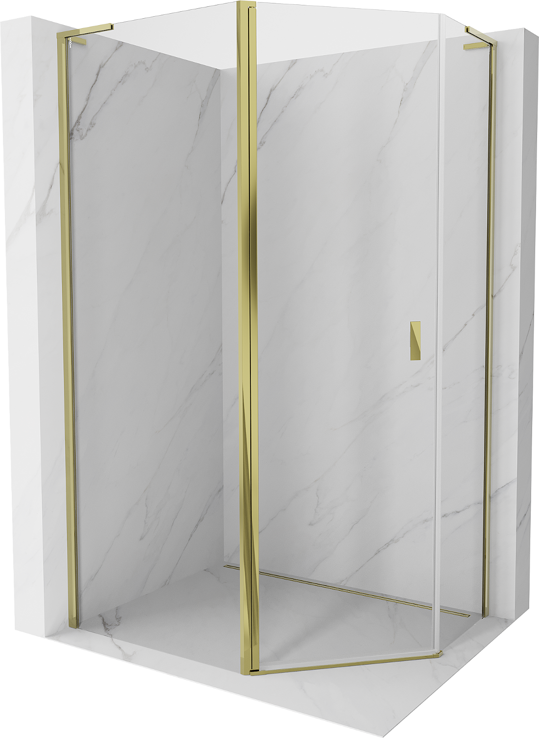 Mexen Mist L asymetrická pětiboká sprchová kabina s otevíracími dveřmi 90 x 80 cm, transparentní, zlatá