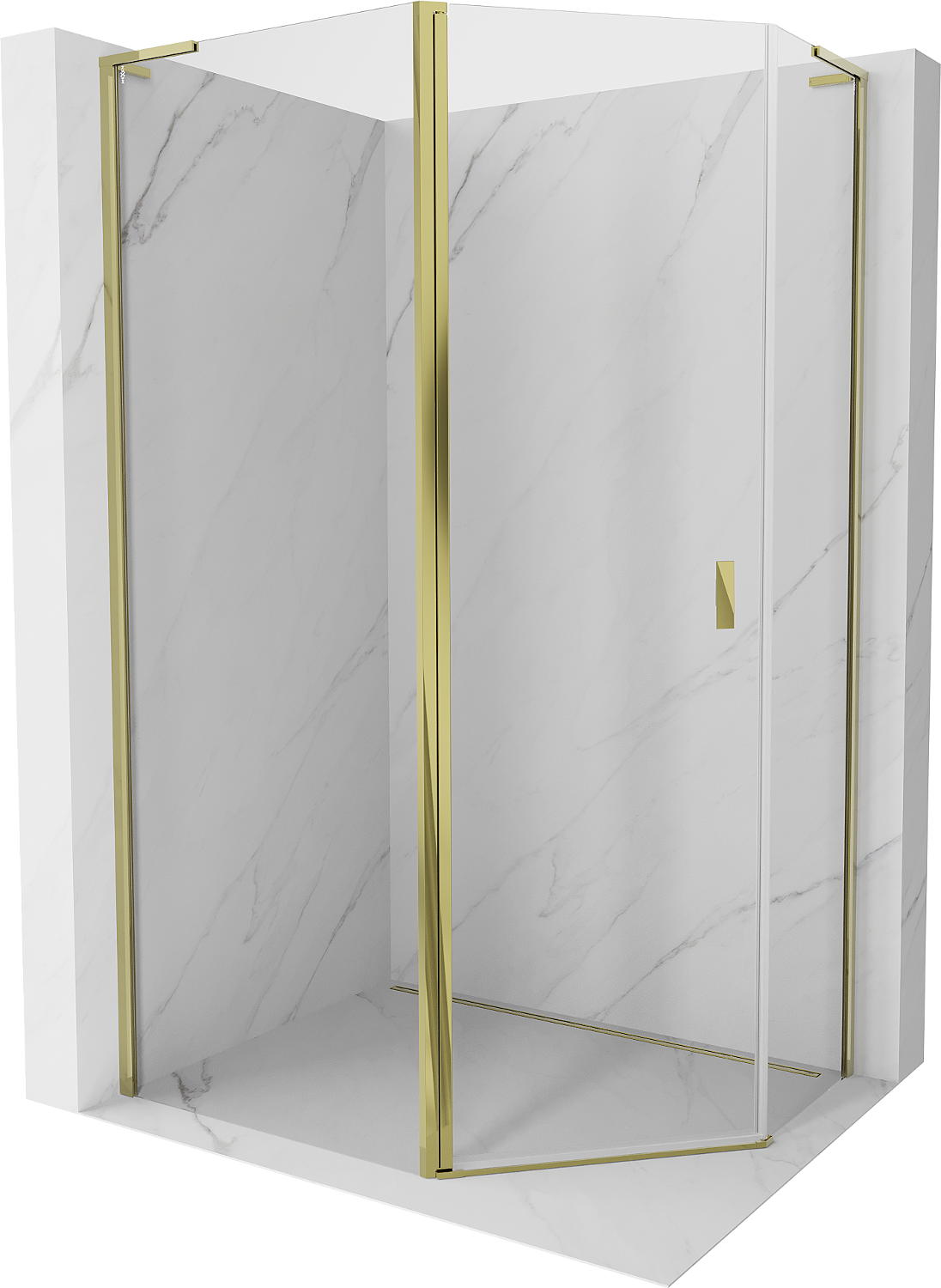 Mexen Mist L pětiúhelníkový sprchový kout asymetrický výklopný 100 x 80 cm, transparentní, zlatý - 8A8L-100-080-50-00