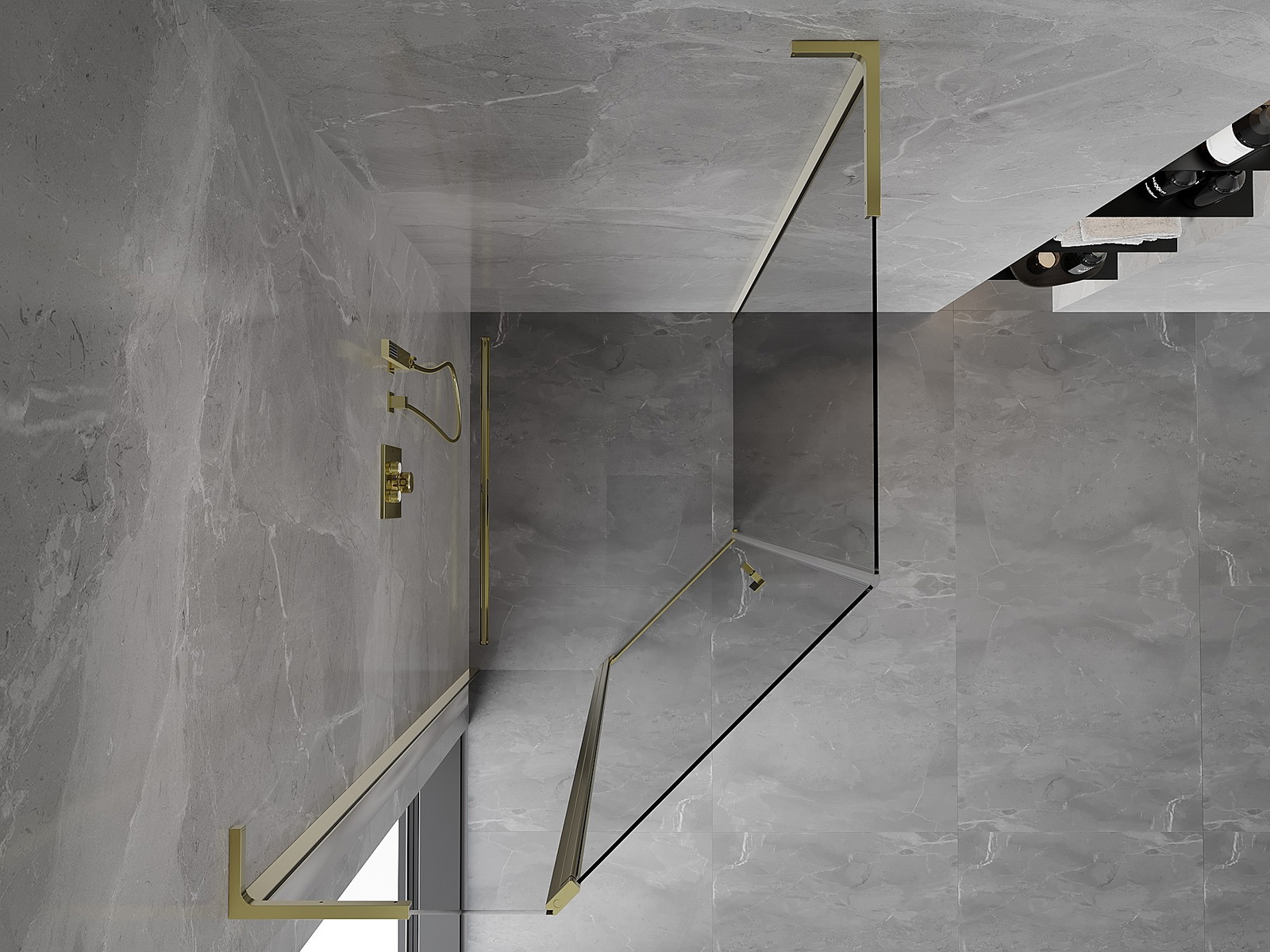 Mexen Mist L asymetrická pětiúhelníková sprchová kabina otočná 90 x 100 cm, transparentní, zlatá - 8A8L-090-100-50-00