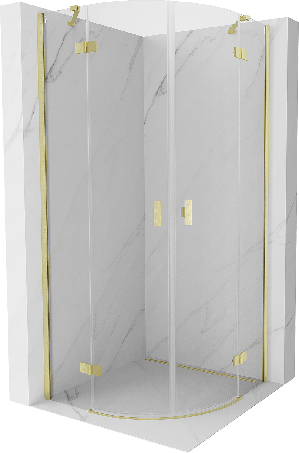 Mexen Mist sprchový kout půlkruhový otevírací 90 x 90 cm, průhledný, zlatý kartáčovaný - 8A33-090-090-55-00