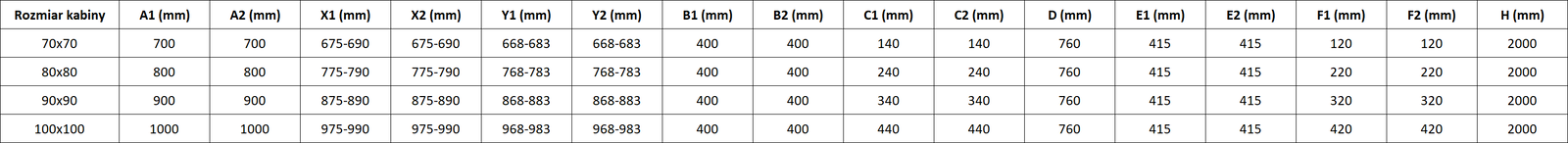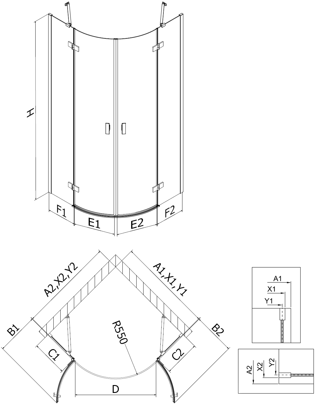 Sprchové kouty, dveře a stěny jsou standardně přizpůsobeny pro montáž na sprchové vaničky určitých rozměrů. Právě tyto rozměry jsou uvedeny v názvu nebo popisu výrobku. Je však třeba mít na paměti, že skutečné rozměry prvků se mohou mírně lišit od nominálních hodnot. V případě plánované instalace přímo na podlahu se doporučuje pečlivě zkontrolovat vnější rozměry a uspořádání prvků podle technického výkresu.