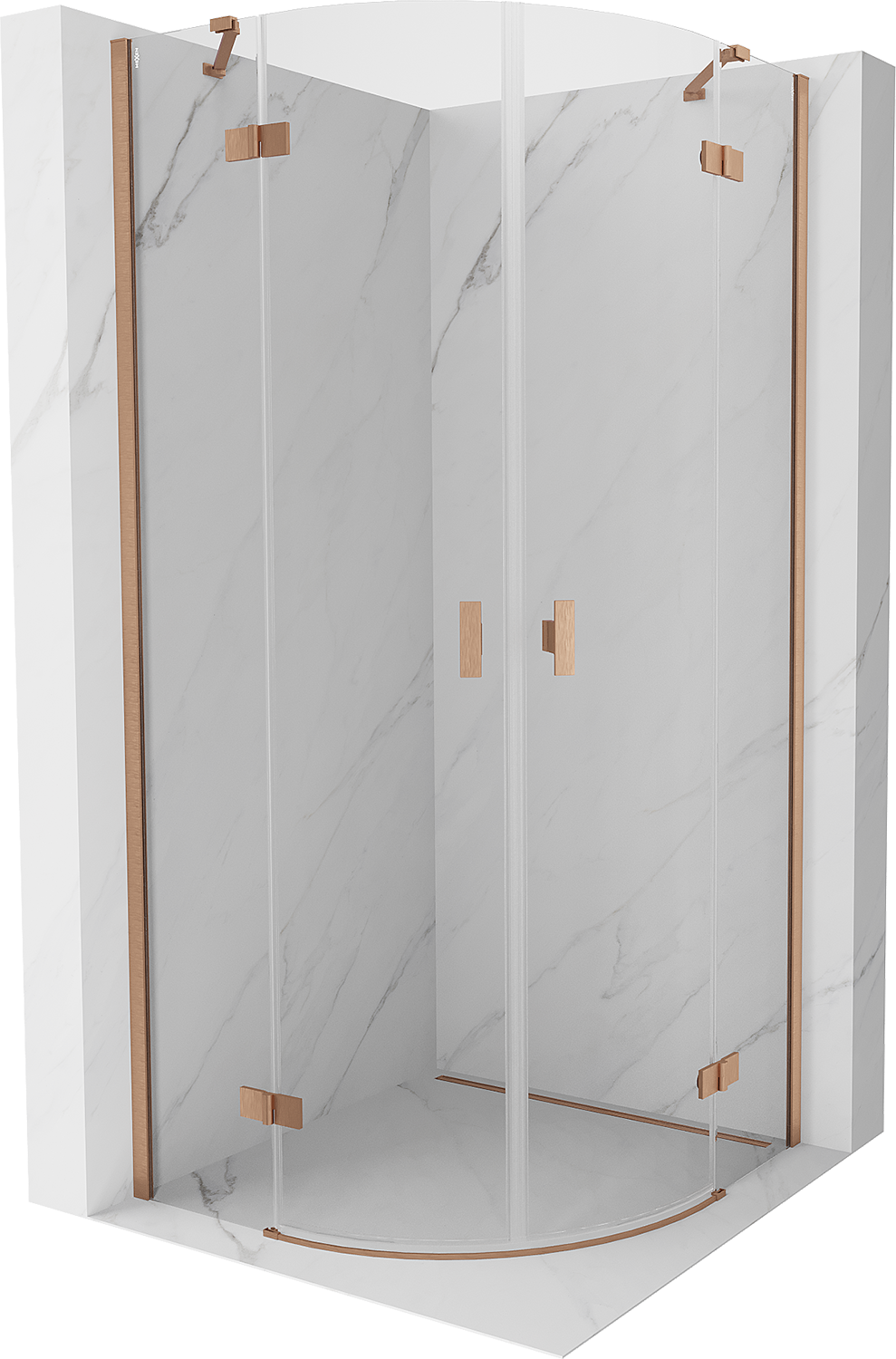 Mexen Mist sprchový kout půlkruhový otočný 100 x 100 cm, transparentní, kartáčovaná měď - 8A33-100-100-65-00